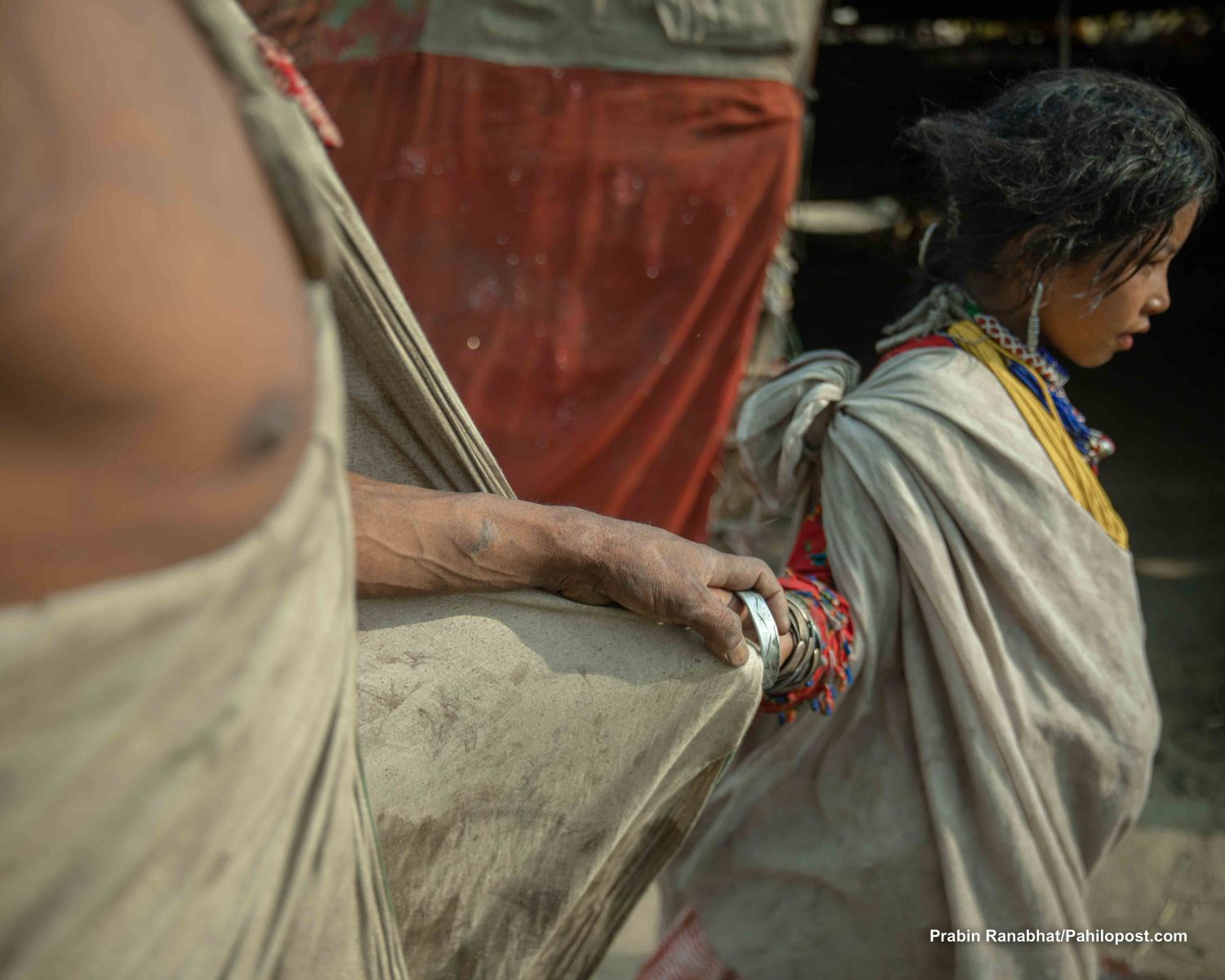 उनीहरुको दुनियाँ बेग्लै छ। त्यहीँ रमाइरहेका छन्। थोरै शहरको प्रभाव छिर्दैछ उनीहरुको साम्राज्यमा। बोतलका रक्सीले इन्ट्री पाउन थालिसकेको छ बस्तीमा। पुस्ता दरपुस्ता जोगाउने शिक्षित समाजभन्दा दुरु उनीहरु तत्कालका लागि जिइरहेको भेट्यौं। एकजना मुखिया बितेका रहेछन्। उनकै अन्त्यष्टिमा भोज पनि रहेछ। भोजमा मस्त मातिइरहेका थिए उनीहरु। माटोसँग जोडिँदा सन्तुष्ट उनीहरुका यस्ता दृश्य कतिन्जेल यस्तै देखिइरहने हुन् भन्न सकिन्न। यी दृश्य पनि पहिलेभन्दा ‘आधुनिक’ भएका होलान्। यतिमात्र हो हामीले बुझेको ‘आधुनिक’को परिभाषा र उनीहरुको परिभाषामा ठूलै अन्तर हुनुपर्छ।