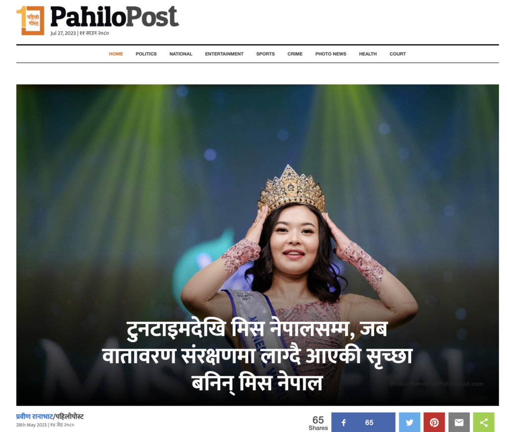 टुनटाइमदेखि मिस नेपालसम्म, जब वातावरण संरक्षणमा लाग्दै आएकी सृच्छा बनिन् मिस नेपाल