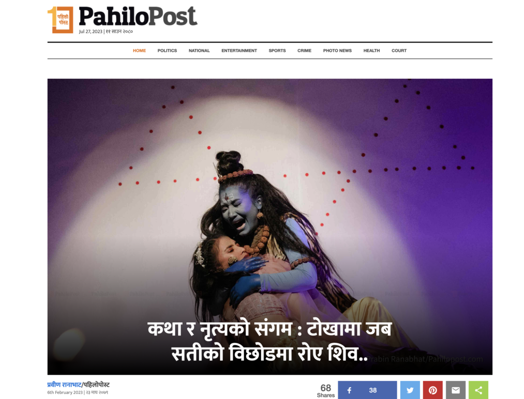 प्रवीण रानाभाट/पहिलोपोस्ट 6th February 2023 | २३ माघ २०७९ 68Shares 38 काठमाडौं : नेपालमा नृत्य विधालाई थप विकसित गर्ने उद्देश्यले एस्थेटिक डान्स स्टुडियोले केहीसमय यता ‘नृत्य श्रृंखला’ संचालन गरिरहेको छ।वैशाख महिनाबाट सुरु भएको यो श्रृंखलाको पाचौं सिजन ‘शिव सती’ सम्पन्न भएको छ। आइतवार राति काठमाडौंको टोखामा शिव सती नृत्य श्रृंखला ०.५ प्रस्तुत गरिएको थियो। नृत्यमा शिव र […]