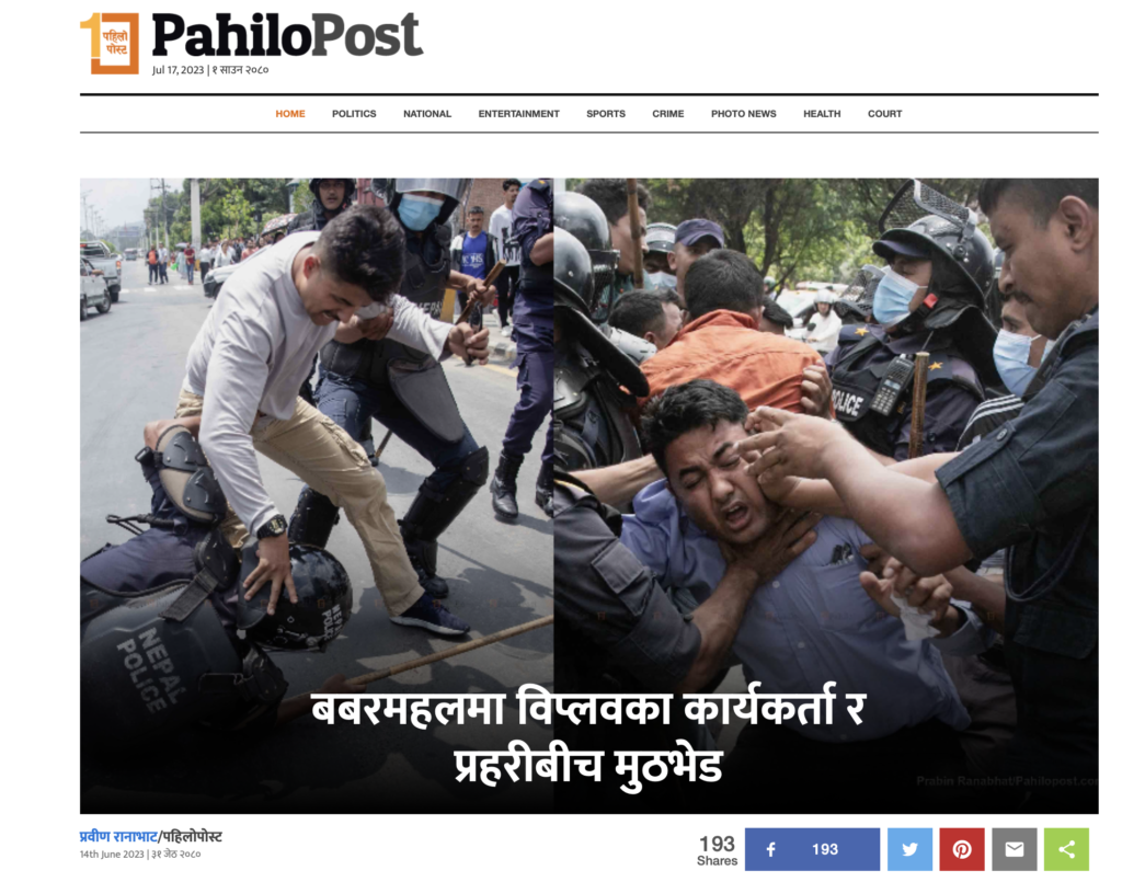 प्रवीण रानाभाट/पहिलोपोस्ट 14th June 2023 | ३१ जेठ २०८० काठमाडौं : नेत्रविक्रम चन्द ‘विप्लव’ नेतृत्वको नेकपा निकट विद्यार्थी संगठन अखिल क्रान्तिकारीका नेता/कार्यकर्ताहरुले जिल्ला अदालत काठमाडौं अगाडि विरोध प्रदर्शन गरेका छन्। नक्कली भुटानी शरणार्थी प्रकरणमा थुनछेक बहस चलिरहँदा उनीहरुले अदालत अगाडि प्रदर्शन गरेका हुन्। प्रदर्शनकारीहरुले ‘देशद्रोहीहरुको पक्षमा वकालत गर्ने पाइँदैन’ भन्दै उक्त प्रकरणमा संलग्नहरुका अधिवक्ताविरुद्ध नाराबाजी गरेका थिए। […]